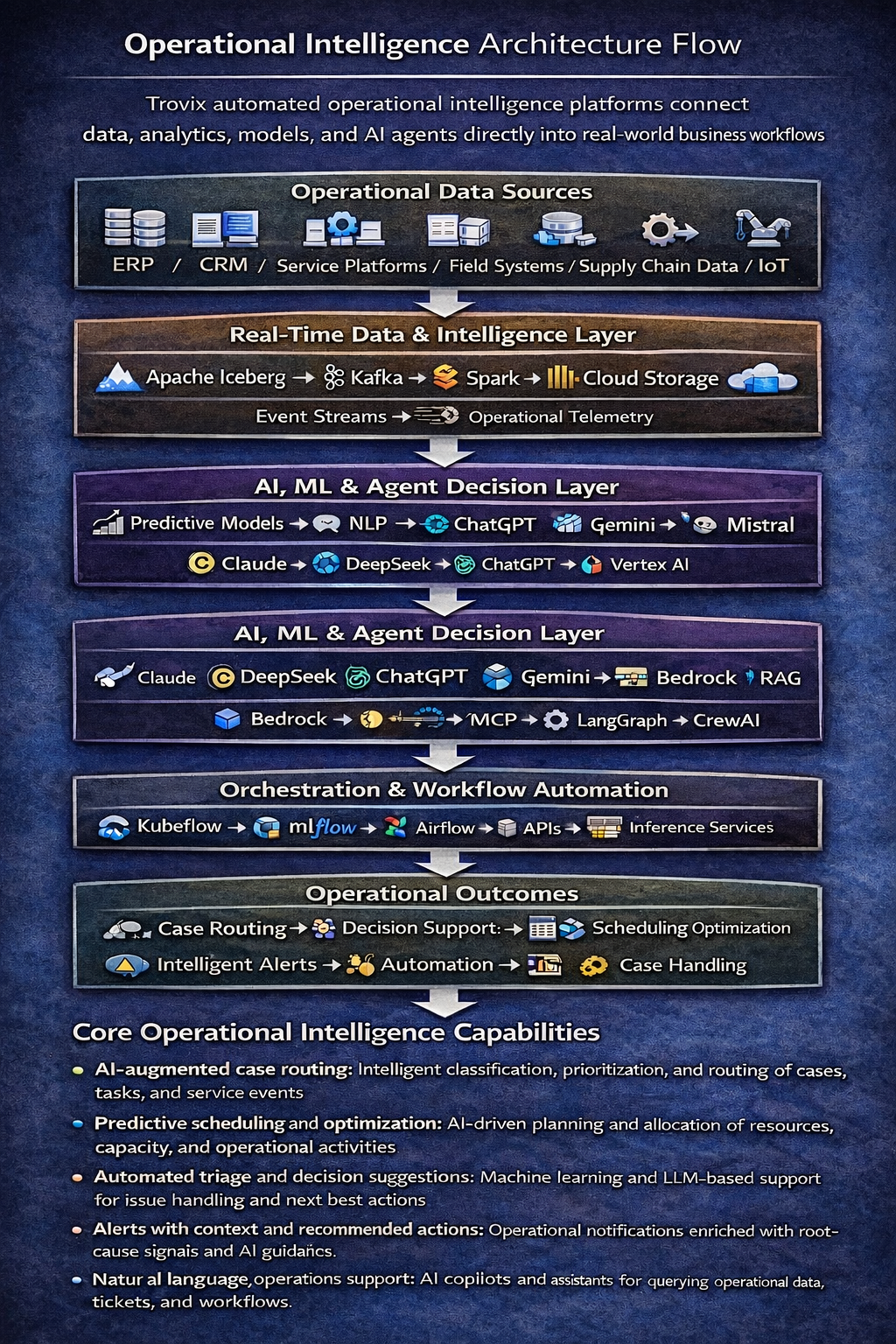 Trovix automated operational intelligence platforms connect data, analytics, models, and AI agents directly into real-world business workflows.